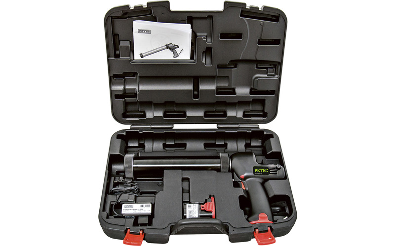 100687 PETEC Multi Akku Ausdrückpistole mit 7,2V Lithium LI-ION Akku zum Auftragen sämtlicher Kleb- und Dichtstoffe aus dem automotiven Bereich, welche sich in 400ml Schlauchbeuteln, 290ml und 310ml Kartuschen befinden.