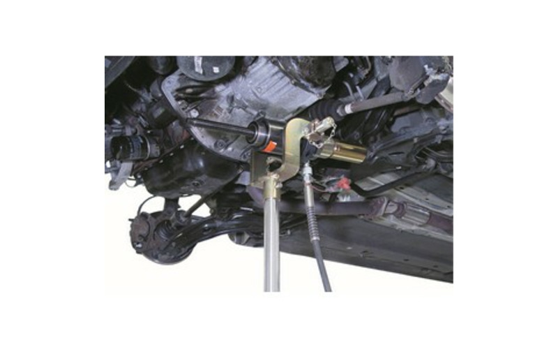 Diese Aufnahmevorrichtung ermöglicht in Verbindung mit einem Getriebeheber (Stempel-⌀ 30mm) ein einfaches und problemloses Arbeiten mit dem 17t Hydraulikzylinder aus dem Werkzeug 100125 (Ergänzendes Hydraulikpresswerkzeug inkl. Spindeln & Adaptern)