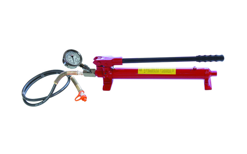 Die Hydraulik-Handpumpe kann als Antrieb für den Hydraulik-Zylinder verwendet werden. Durch das im Satz enthaltene Manometer, mit einer zusätzlichen auf unsere 17 t Hydraulik-Zylinder abgestimmten Tonnenskala, kann während dem Arbeiten der Hydraulikdruck und die benötigte Kraft kontrolliert werden.