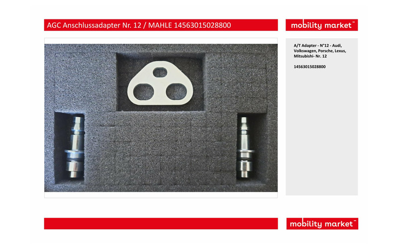 In diesem Fall handelt es sich um den AGC Anschlussadapter Nr. 12, mit welchem Du Aisin/ZF-Getriebe von AUDI, VOLKSWAGEN, PORSCHE, LEXUS u. MITSUBISHI spülen kannst.