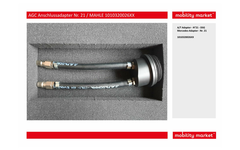 In diesem Fall handelt es sich um den AGC Anschlussadapter Nr. 21, mit welchem Du DSG-Getriebe von MERCEDES-BENZ u. RENAULT spülen kannst.