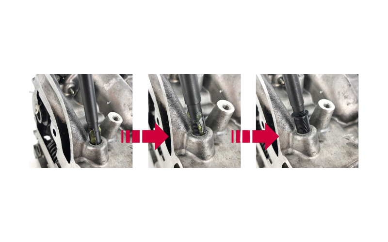 Dieses Reparaturset eignet sich perfekt dazu ein defektes Glühkerzengewinde wieder instand zu setzen. Die Gewindeschneider M8x1,00; M9x1,00; M10x1,00; M10x1,25 mit Sechskantantrieb, sind selbstzentrierend und auf engsten Motorraum einsetzbar. Mit dem Gewindeschneider das neue Gewinde schneiden und danach unter leichtem Druck den Gewindeeinsatz in Gewinderichtung eindrehen.
