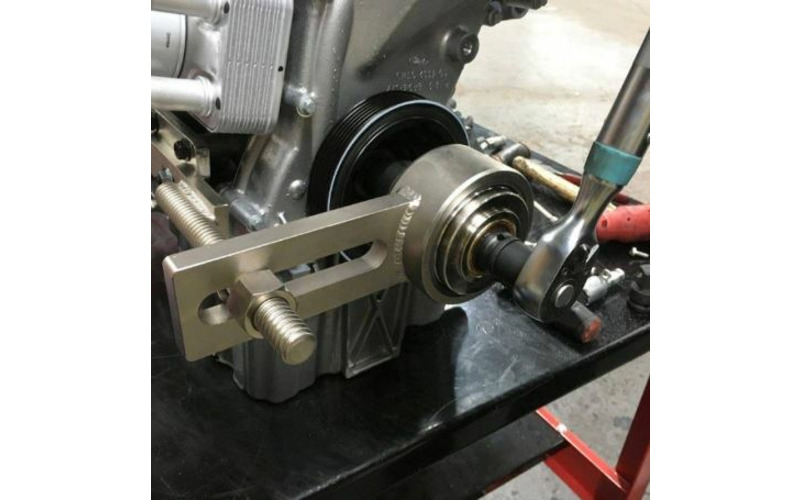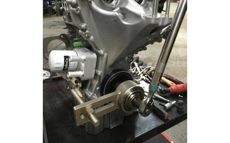 Das 5:1 Drehmomentmultiplikator-Werkzeug wurde entwickelt, um den korrekten Aus- und Einbau der Kurbelwellenriemenscheibenschraube am Ford 1.0 Ecoboost-Motor zu ermöglichen. Die Schraube der Kurbelwellenriemenscheibe wird mit einem sehr hohen Drehmoment angezogen. Mit diesem Werkzeug wird sichergestellt, dass die Schraube korrekt aus- und eingebaut wird.