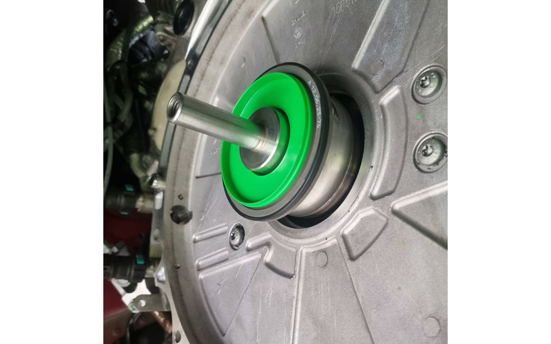 Das Werkzeug besteht aus einer Zentrier- Vorrichtung und einer Einpressglocke. Der Wellendichtring wird hiermit gleichmäßig und zentriert in den Motorblock eingepresst.