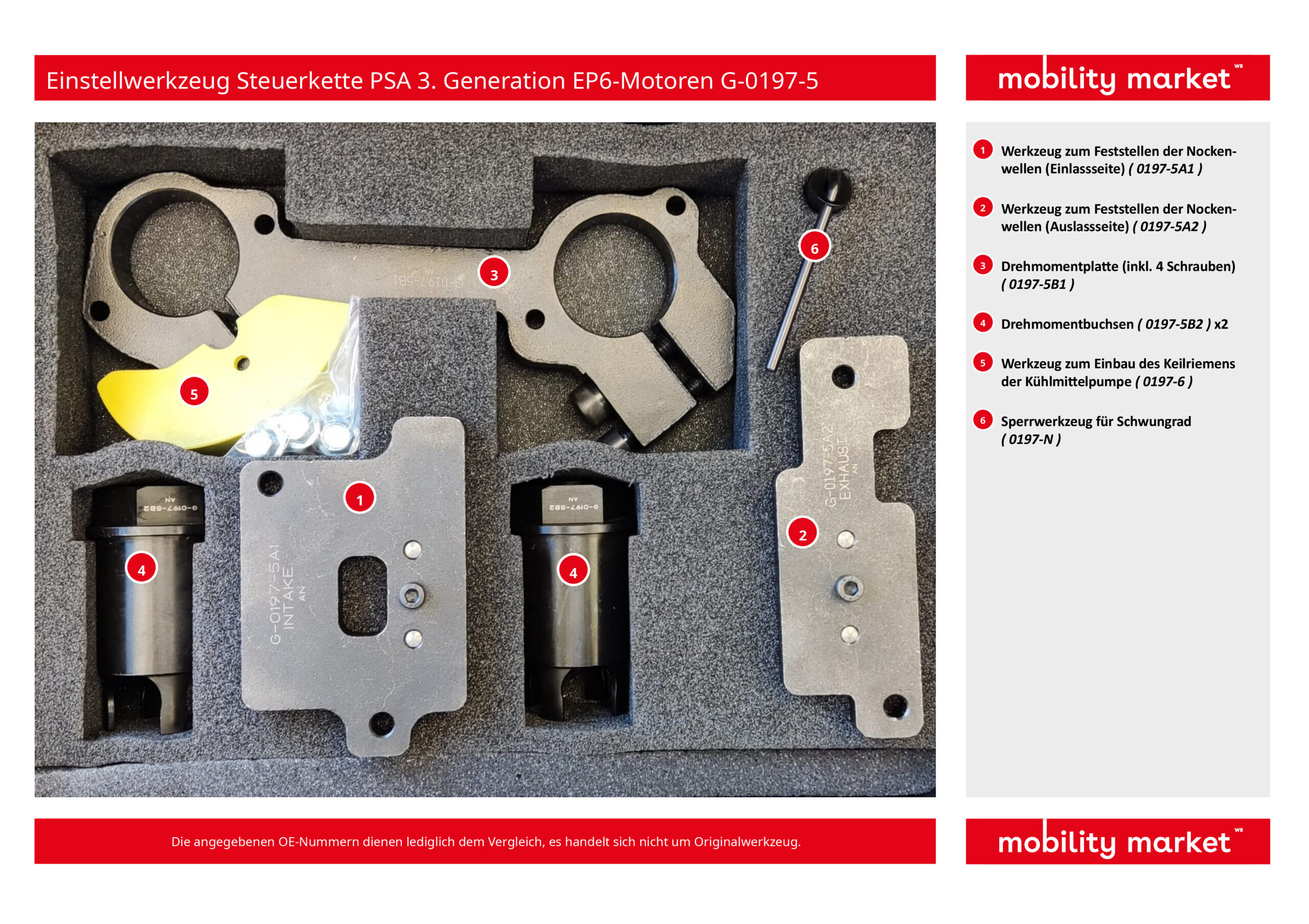 - Werkzeug zum Feststellen der Nockenwellen (Ein- & Auslassseite), Referenz 0197-5A, bestehend aus: