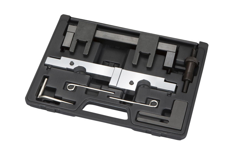 Werkzeugsatz mit dem Sie die Nockenwelle und die Kurbelwelle beim Wechseln der Steuerkette richtig positionieren können.