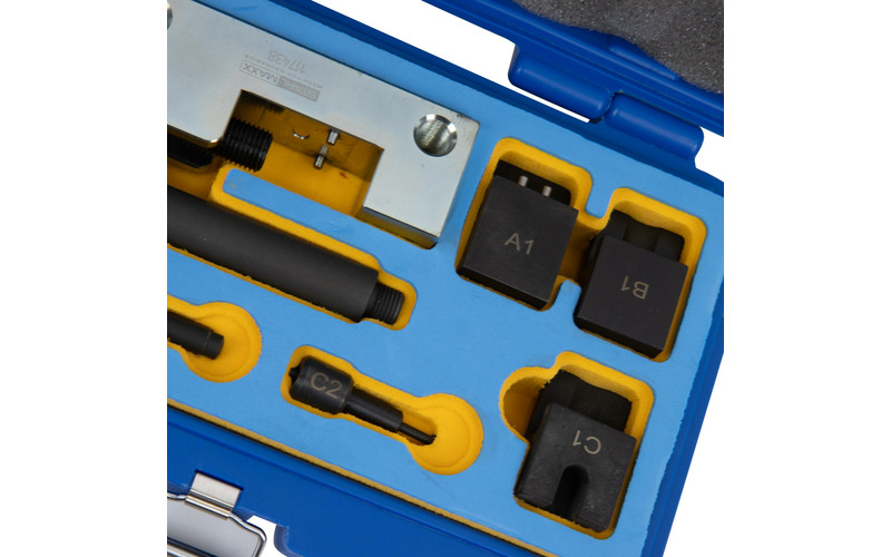 Die Bauweise und die Einbaulage der Steuerkette macht ein spezielles Sonderwerkzeug (wie Mercedes W276589003900) notwendig. Das Spezialwerkzeug besteht aus mehreren Komponenten, wir führen diese im Lieferumfang separat auf.