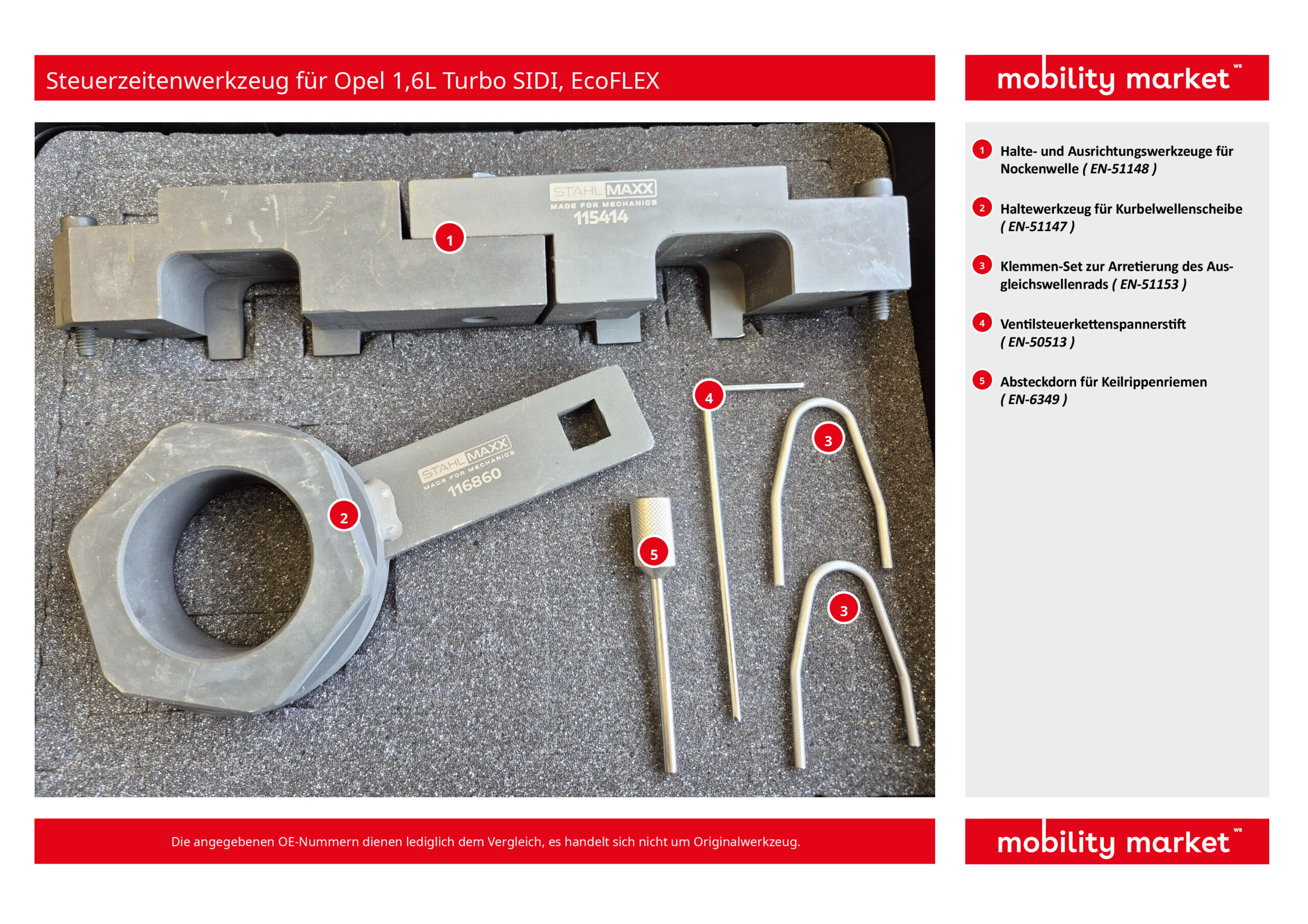 Steuerzeitenwerkzeug für Steuerkettenwechsel und Motorinstandsetzungsarbeiten an Opel 1.6SIDI Turbo SIDI, EcoFLEX Motoren.
