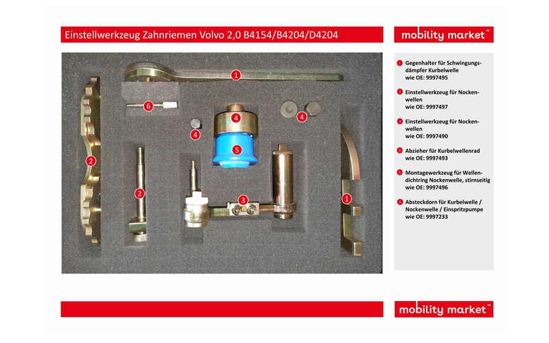 Mit diesem Spezialwerkzeug-Satz, passend für Volvo 2,0 Liter B4154, B4204 Benzin und D4204 Dieselmotoren, ist es problemlos möglich den Zahnriemen zu erneuern und die Steuerzeiteneinstellung vorzunehmen.